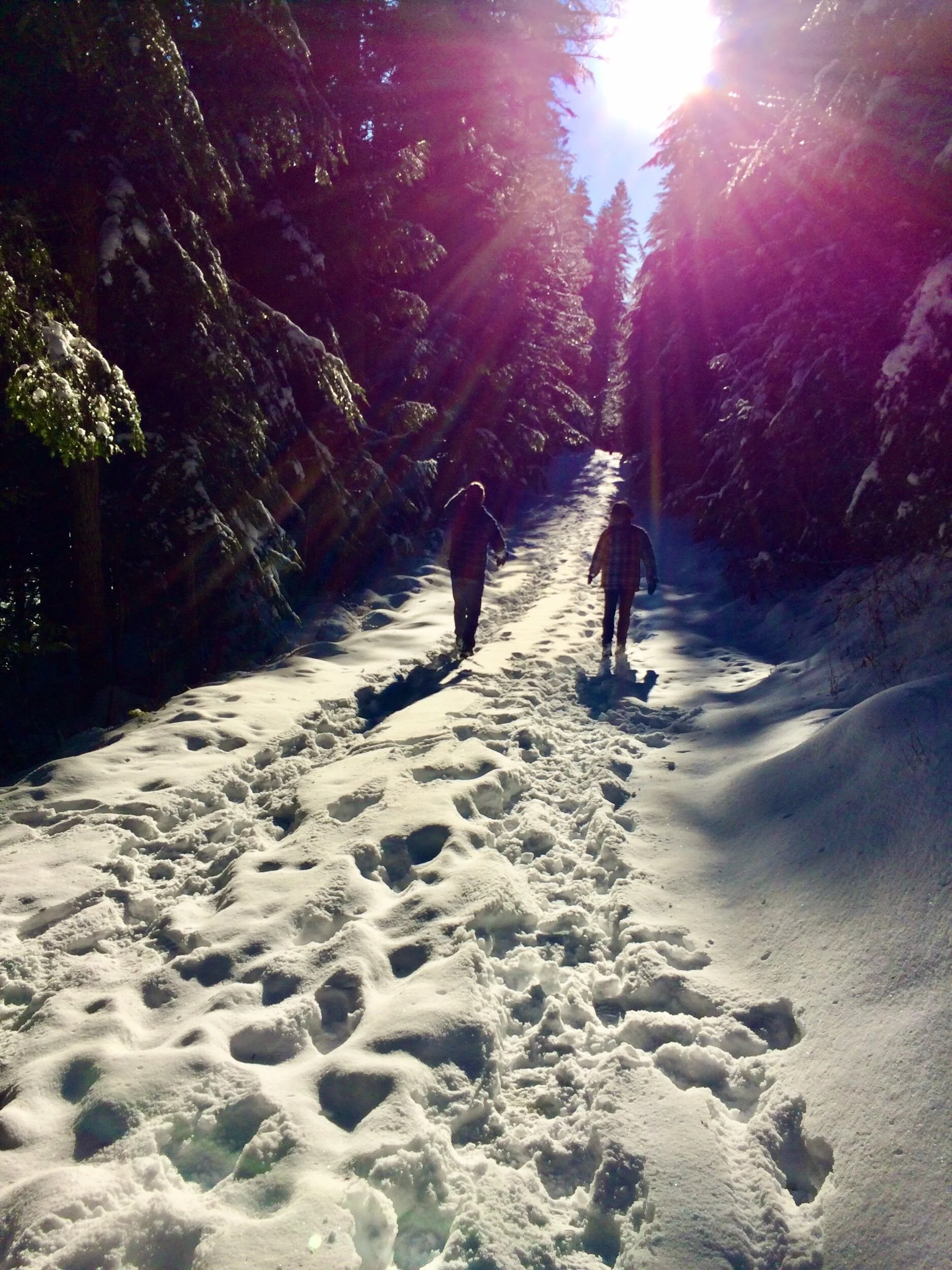 It is a winter wonderland out there in the Shuswap! The evenings are clear and crisp, and there are stars upon stars in the sky! The lake is cold and calm, reflecting the oh-so-dark night. The mountains are in their majestic winter glory. Why not take in the magic of winter and head to your favorite local trail for a night hike! Grab the snowshoes, ice cleats, or hiking boots, the headlights, and head to the local trails! Anyone can enjoy the magic of the forest after nightfall. But safety and preparation are key.