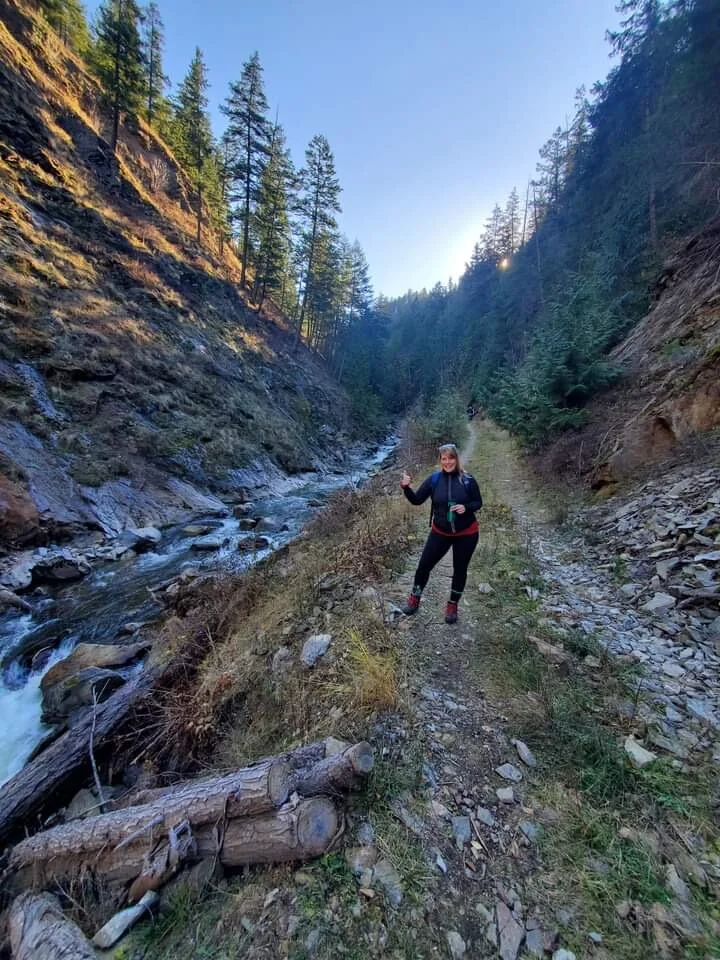 This is a historic trail and a local favorite! The flumes were built by the Adams River Lumber Company to transport logs and the two trails, which are separated by the road tell this fascinating story!
