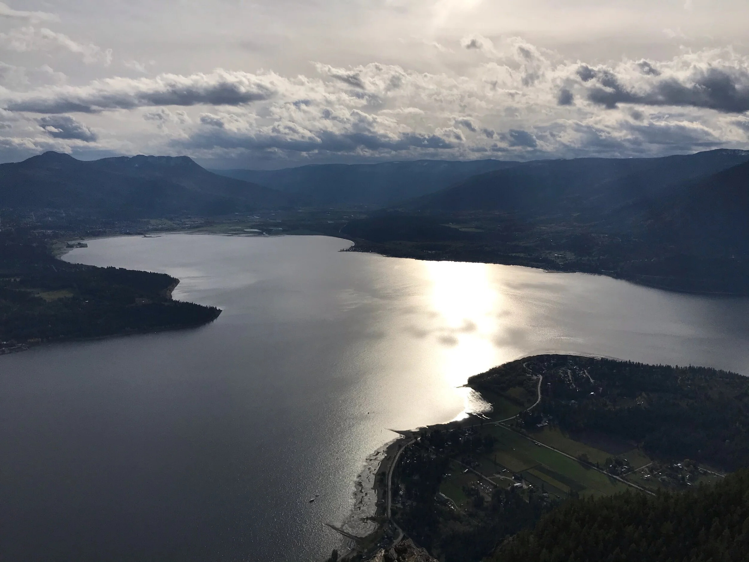 From the lookout, the far-reaching views of Salmon Arm, Salmon Bay, Canoe, Mount Ida, Flyhills, Mt.Tappen, Tappen Bay, Skimikin Valley, and Sunnybrae will keep you happily admiring for some time! An absolutely stunning scene! But be careful, those cliff edges are scary!
