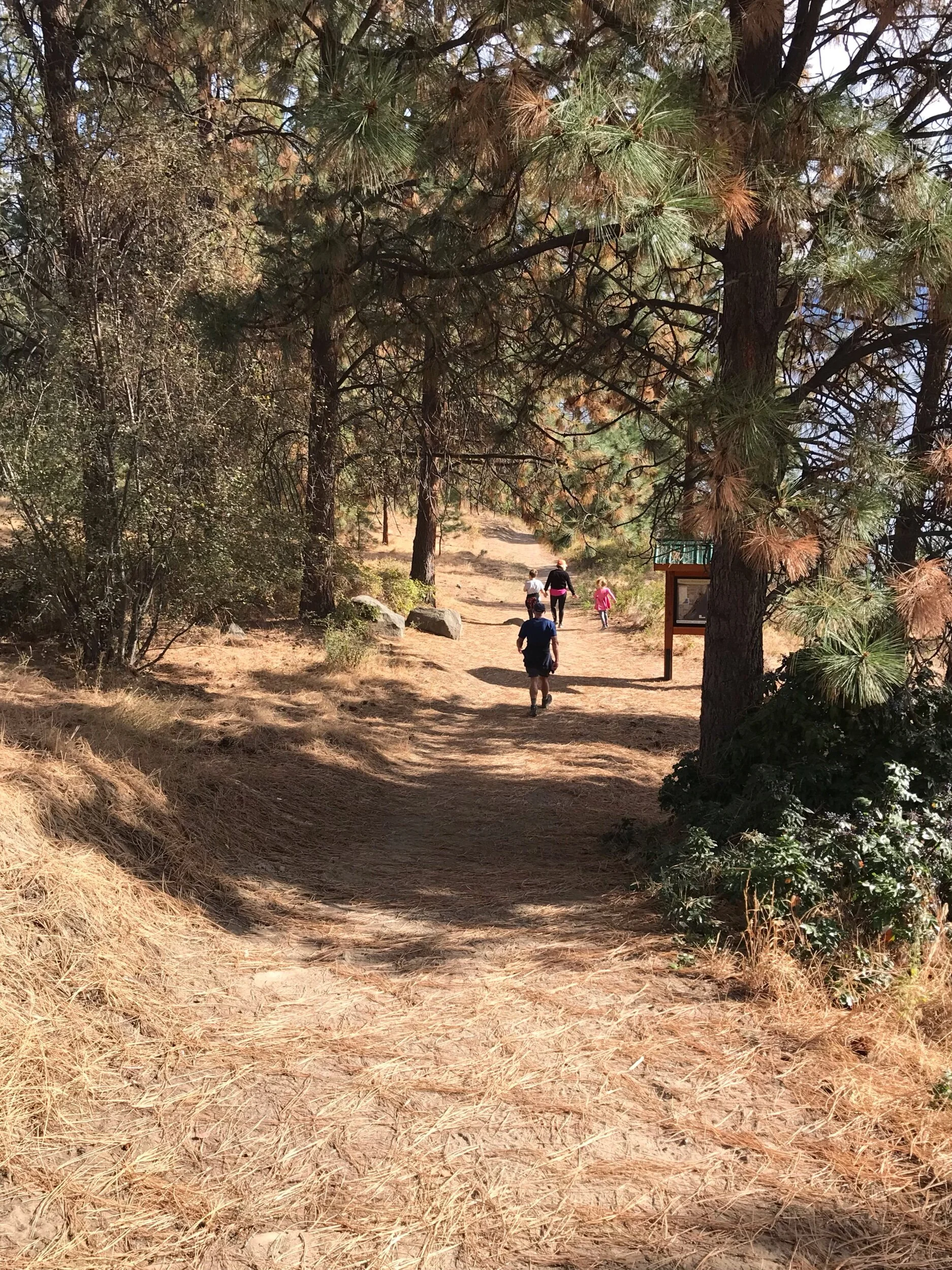 We started our fun journey on the Waterfront trail and then continued up to the Upper Rim trail. The Waterfront trail is great for all abilities including small kids and strollers. There are lots of neat little spots to dip down onto a beach and go for a swim! The flat pathway leads through a forest of Black Cottonwood and Ponderosa Pines. The trails boast natural features like caves, scree slope, and igneous rock formations. After a family lesson in Poison Ivy, we continued on to the more difficult Upper Rim trail.