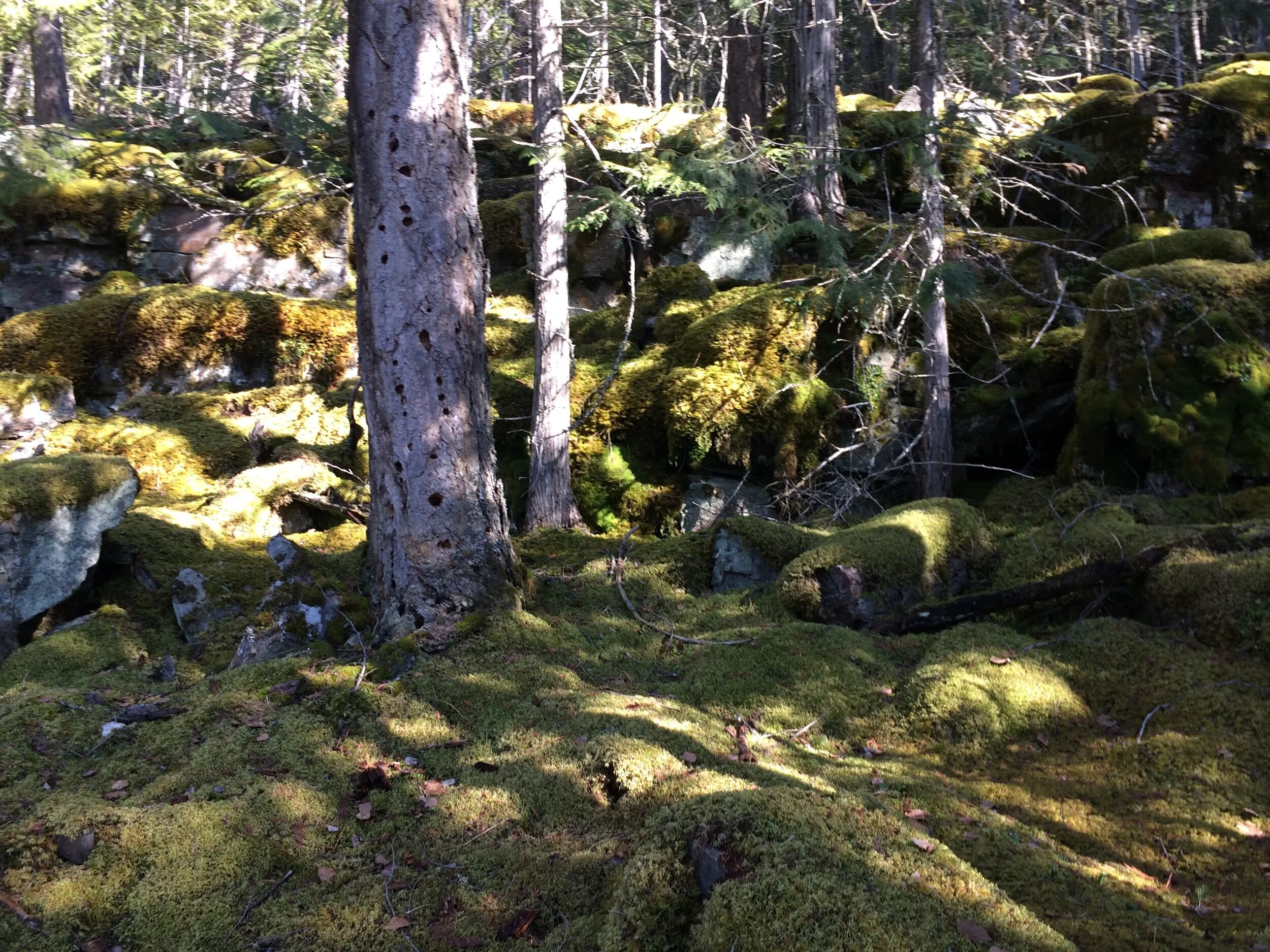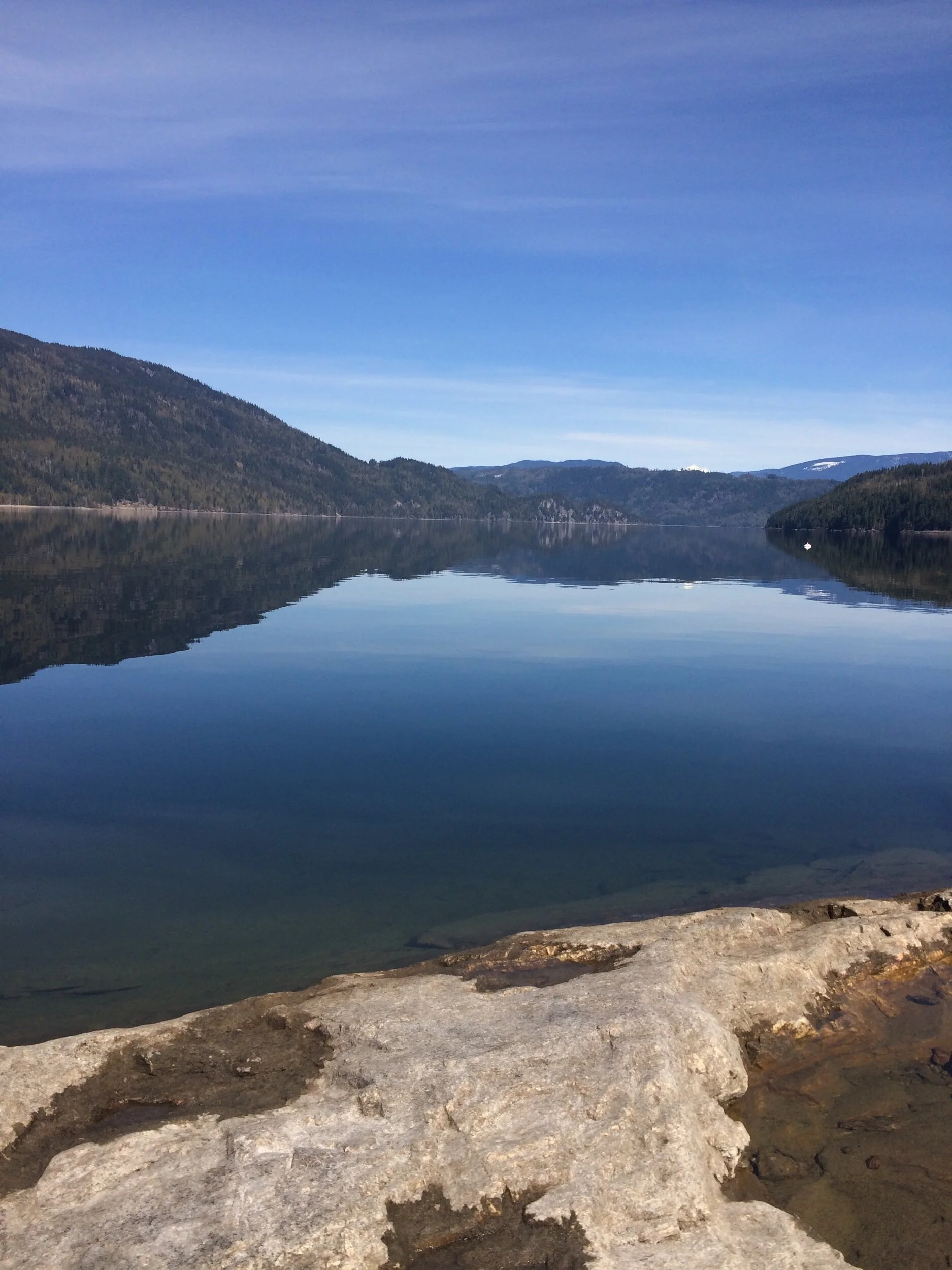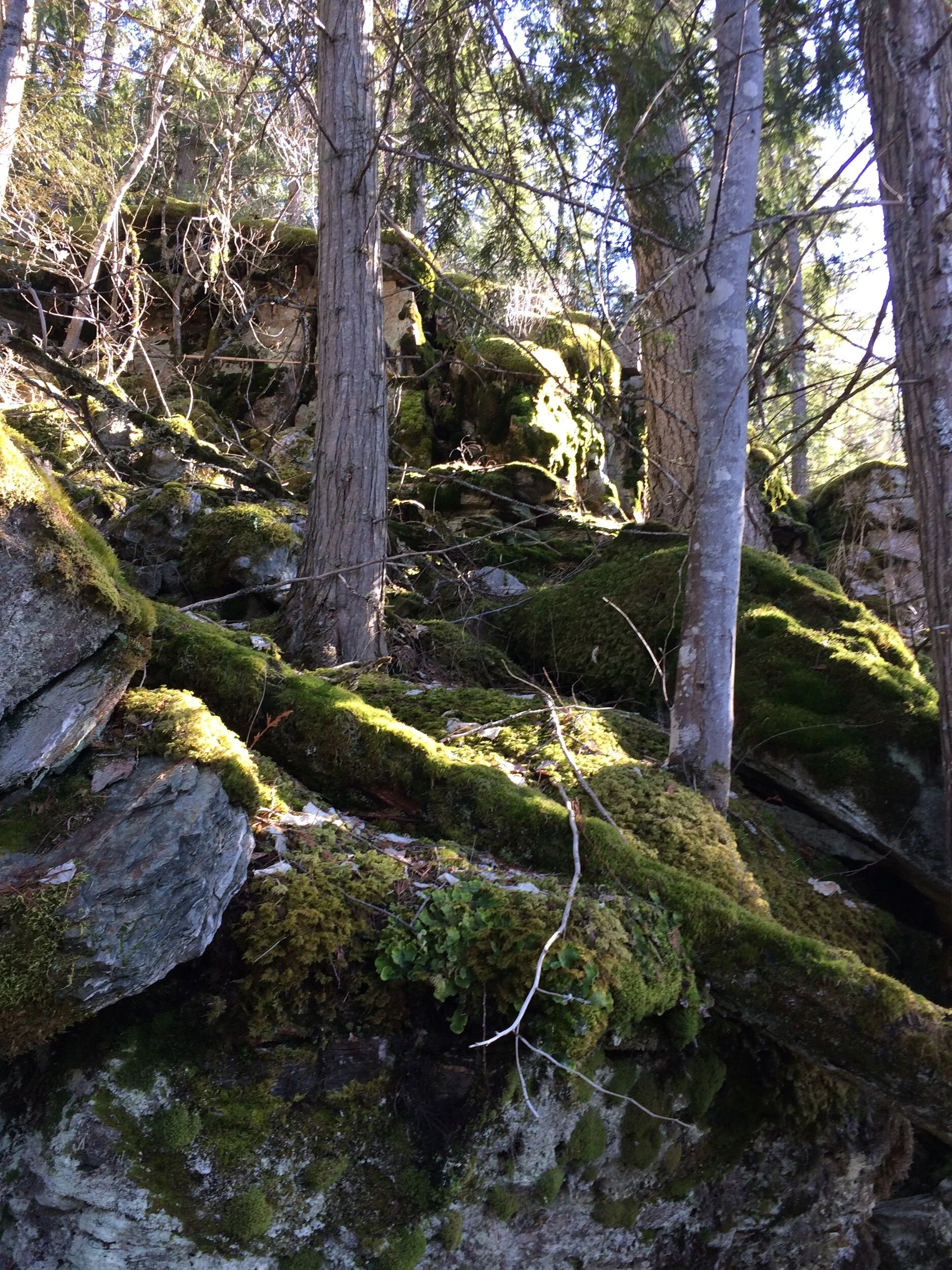 An excellent family hike to a quiet and secluded waterfront destination. We pack a picnic and bathing suits and spend the day here. A beautiful mossy forest provides a cool spot to beat the Shuswap heat.