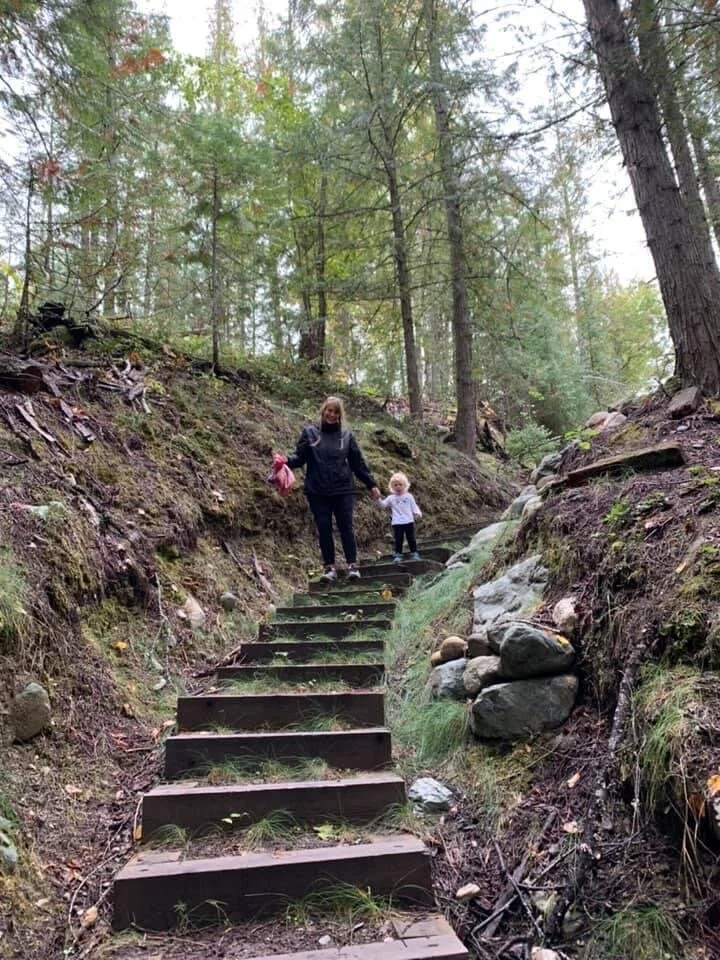 We LOVE the history of this trail! It is our go-to spot to bring the out-of-town company as I feel it is one of the best trails in the Shuswap due to its history and super well maintained and well-built infrastructure. In fact, we love it so much that we have recently done our family photoshoot here!