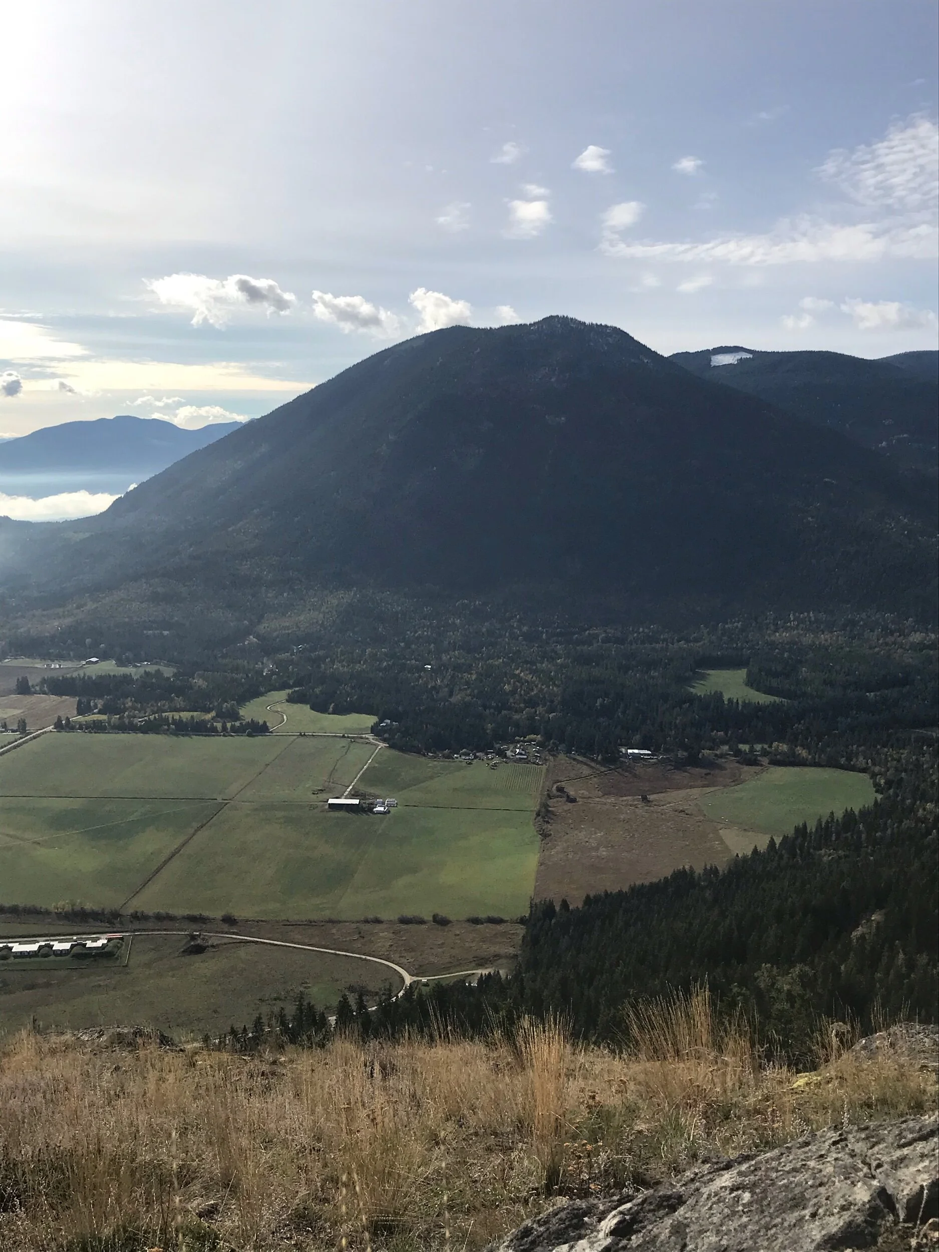 The top opens up to a jaw-dropping panoramic view of our gorgeous region! The lake, the sky, the clouds, the farmlands, and the mountains were wondrous! I have to say, it is one of the best viewpoints around! And we are surrounded by incredible viewpoints here in the Shuswap. The short hike, with the epic finale, made this a perfect quick weekday morning trek.