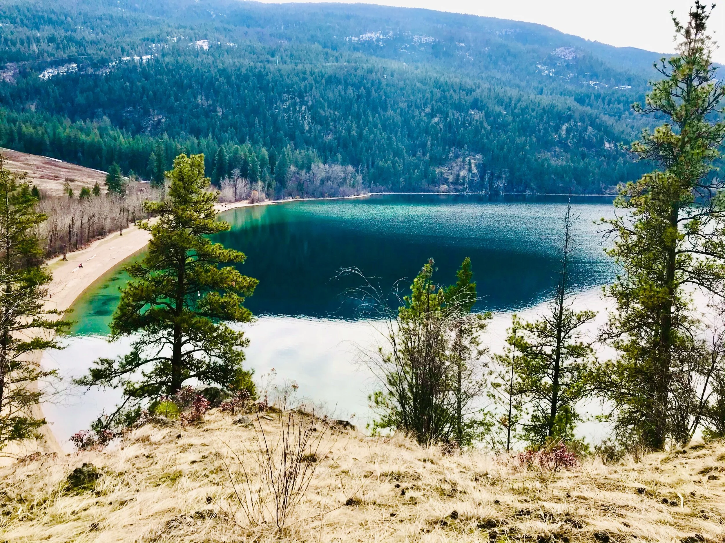 Looking down at Cosens Bay and the glorious colors of Kalamalka from the Sidewinder Trail | Cosens Bay Trail
