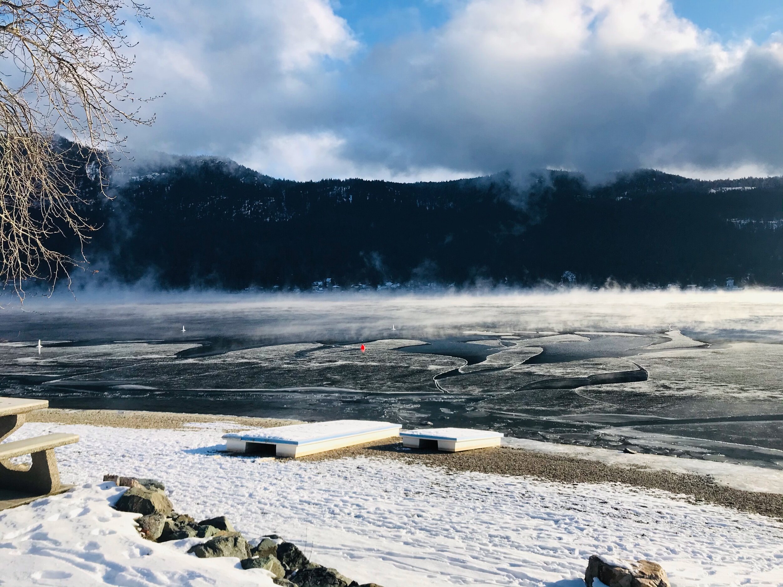 A frozen bay seen from our school bus stop in Blind Bay | Shuswap Adventure Girl