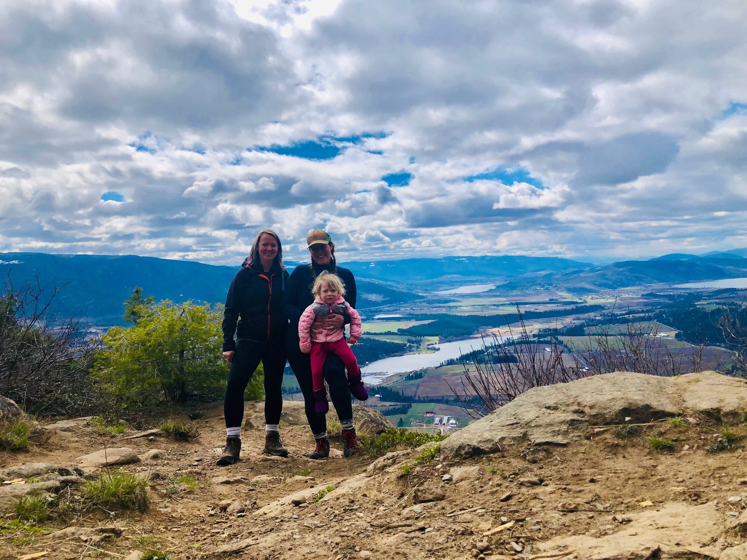 Hikers can take in the far-reaching views of Otter, Swan, and Okanagan Lakes. My friend Miranda and I and little Daisy.