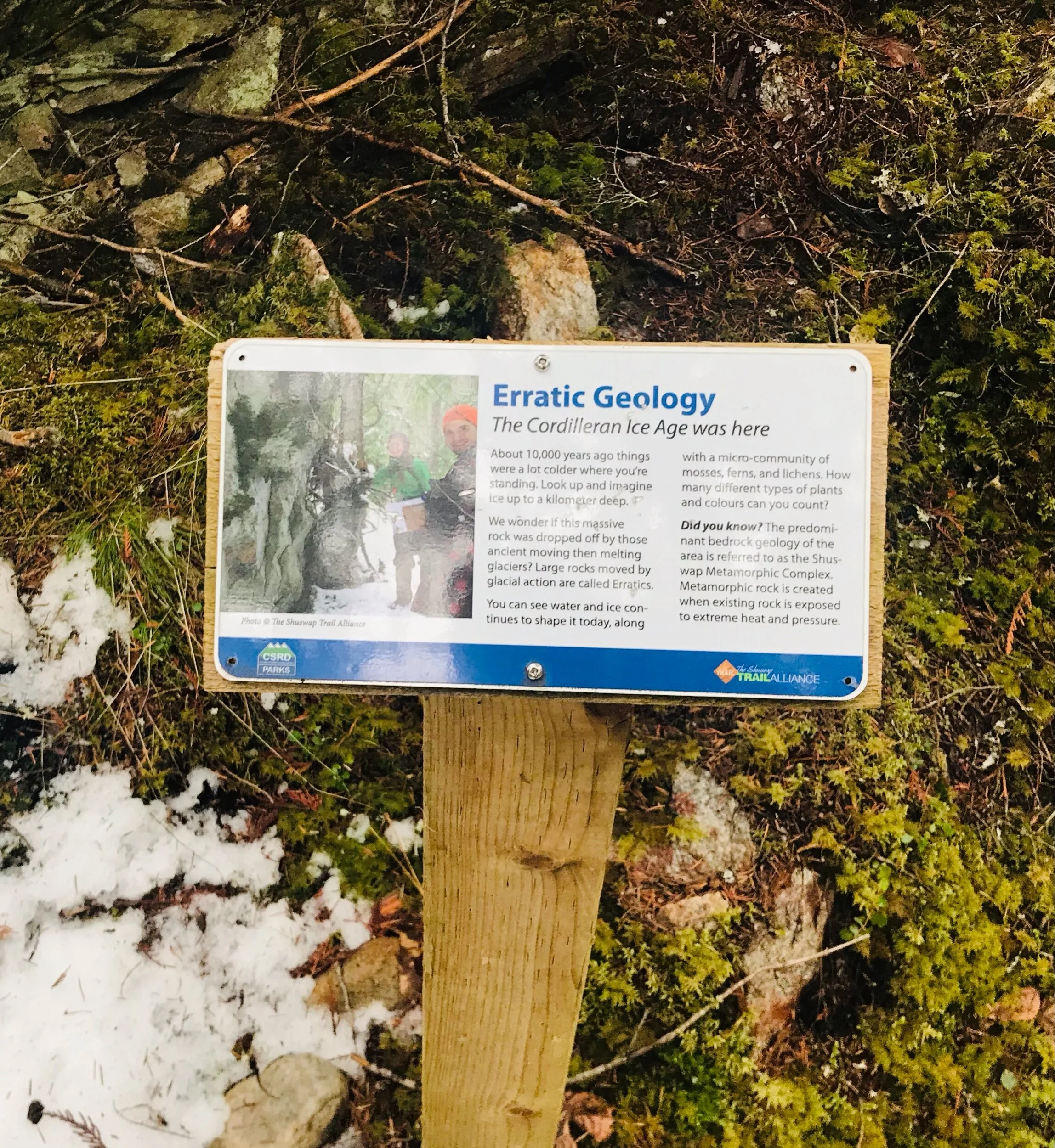 The North Fork Wild Lower Trailhead. Shown here with the Shuswap Trail Alliances trail guide.