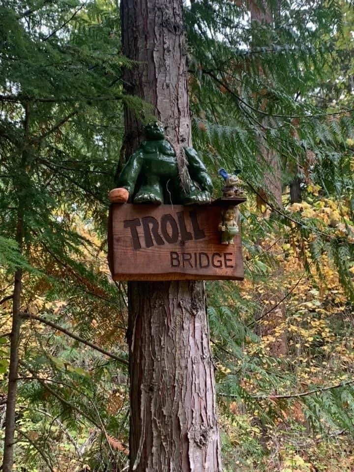 The South Canoe Trail System is made up of a large network of trails built and used for hiking, snowshoeing, mountain biking, running, and horseback riding. A fun feature is the Troll Trail which has a great little winding bridge, which is adorned by a collection of little trolls, all peeking out at you! The kids absolutely love this! It is a great spot in the fall to enjoy the many different types of trees. It also provides access to the Larch Hills trail system above and the Larch Hills Traverse. Make this trail system as long or short, difficult or easy as you please. It would require an extensive amount of time to explore all of the trails here!